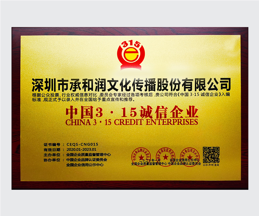 中國3.15誠信企業稱號